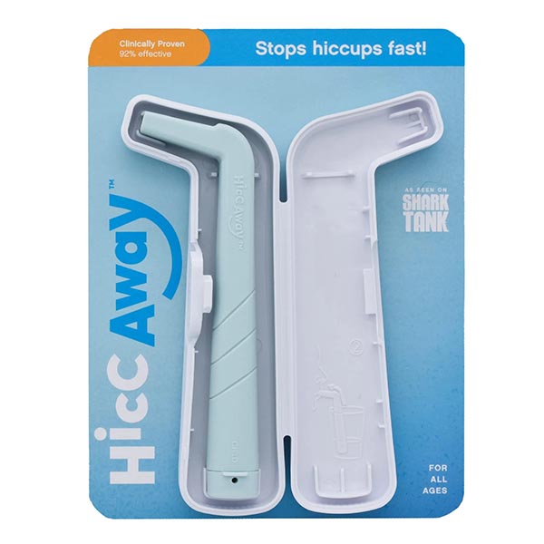 HiccAway is the a clinically proven device that stops hiccups fast. HiccAway was invented by Dr. Seifi, a physician. The cap can be adjusted to ADULT or CHILD (up to 20 kg). Insert HiccAway into a shallow glass of water and sip forcefully to stop hiccups fast. Patented 100% Money-Back Guarantee Dishwasher safe Made in USA As seen on Shark Tank For all ages Compact/Portable and Reusable Clinically Proven Backed by science, published in Journal of American Medical Assocation (JAMA) and National Geographic
